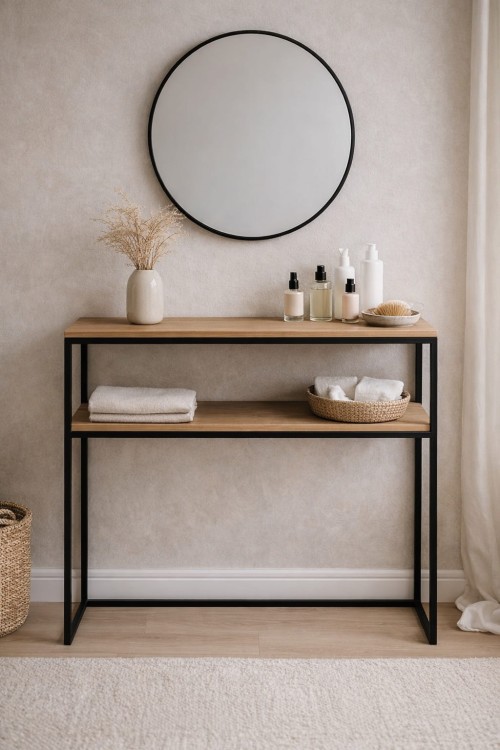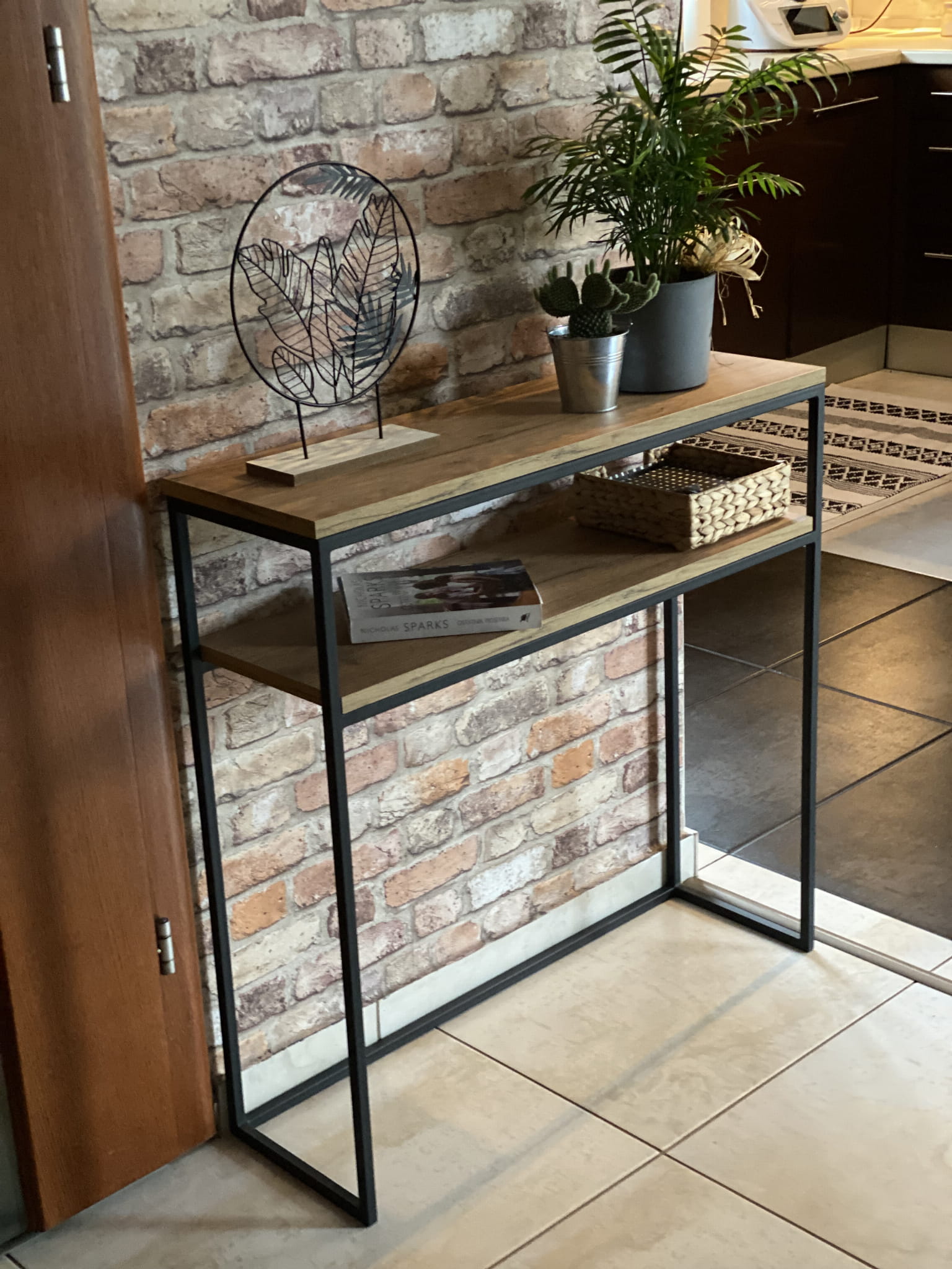 KONSOLA, TOALETKA STYL INDUSTRIALNY, LOFT 80x25x80 z półką na 1/3 wysokości od góry