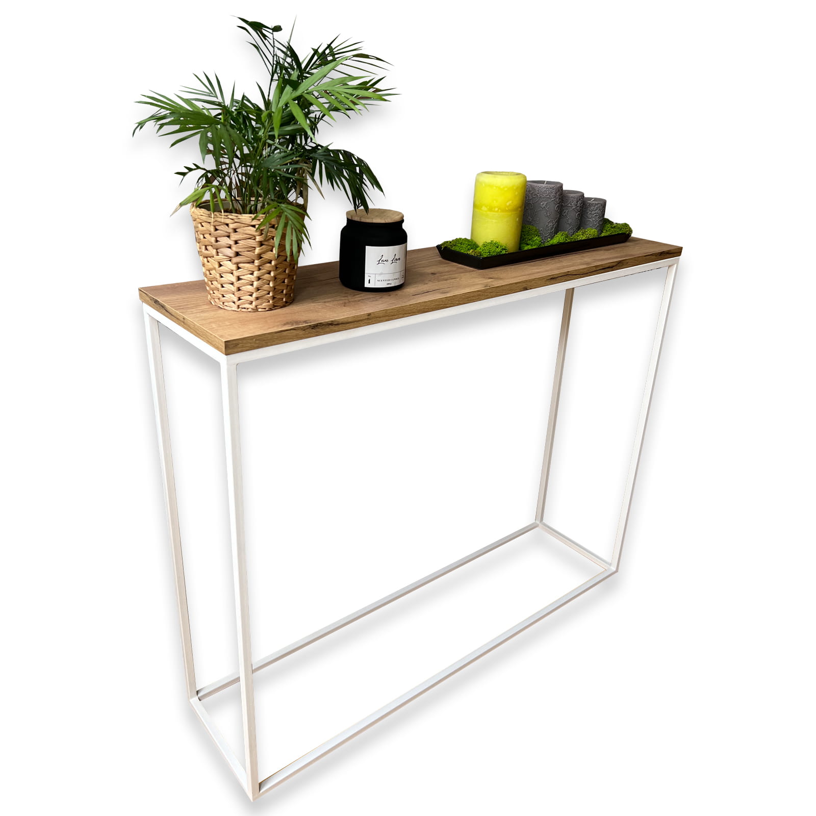 - Podstawa wykonana ze stali lakierowanej proszkowo. Zapewnia to wytrzymałość, odporność na rdzę i możliwość wieloletniego korzystania z konsolki.