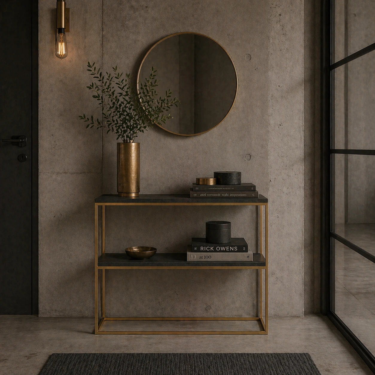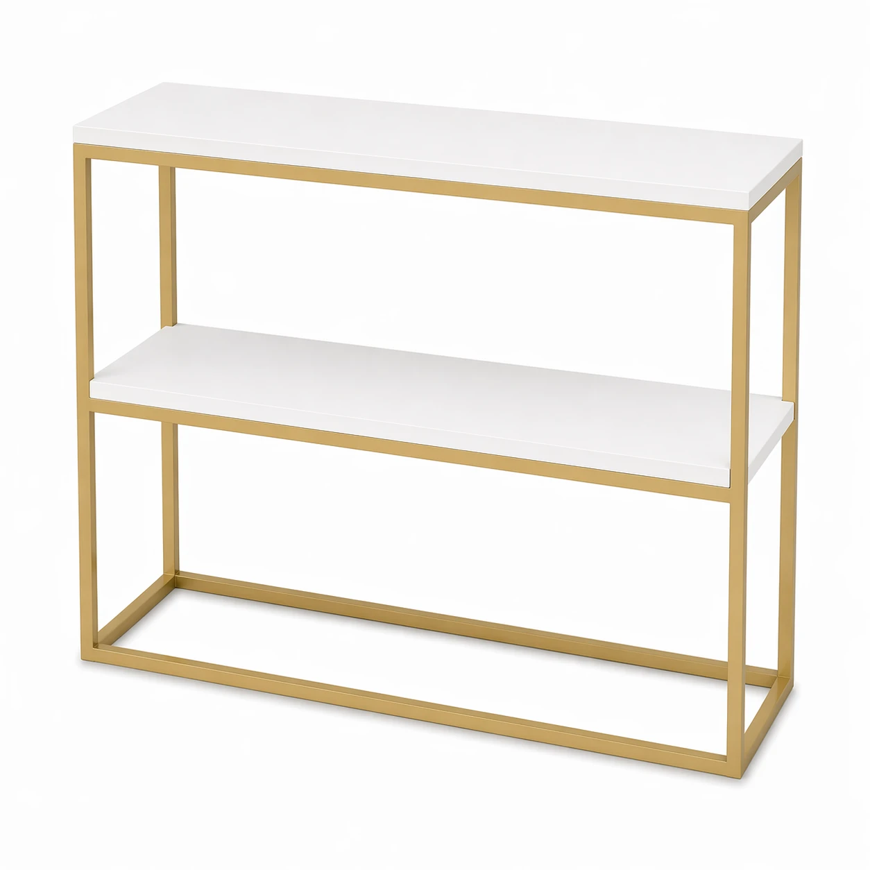 Konsolka, toaletka 80x18x72 z półką styl industrialny loft profil 15x15 złota glamour