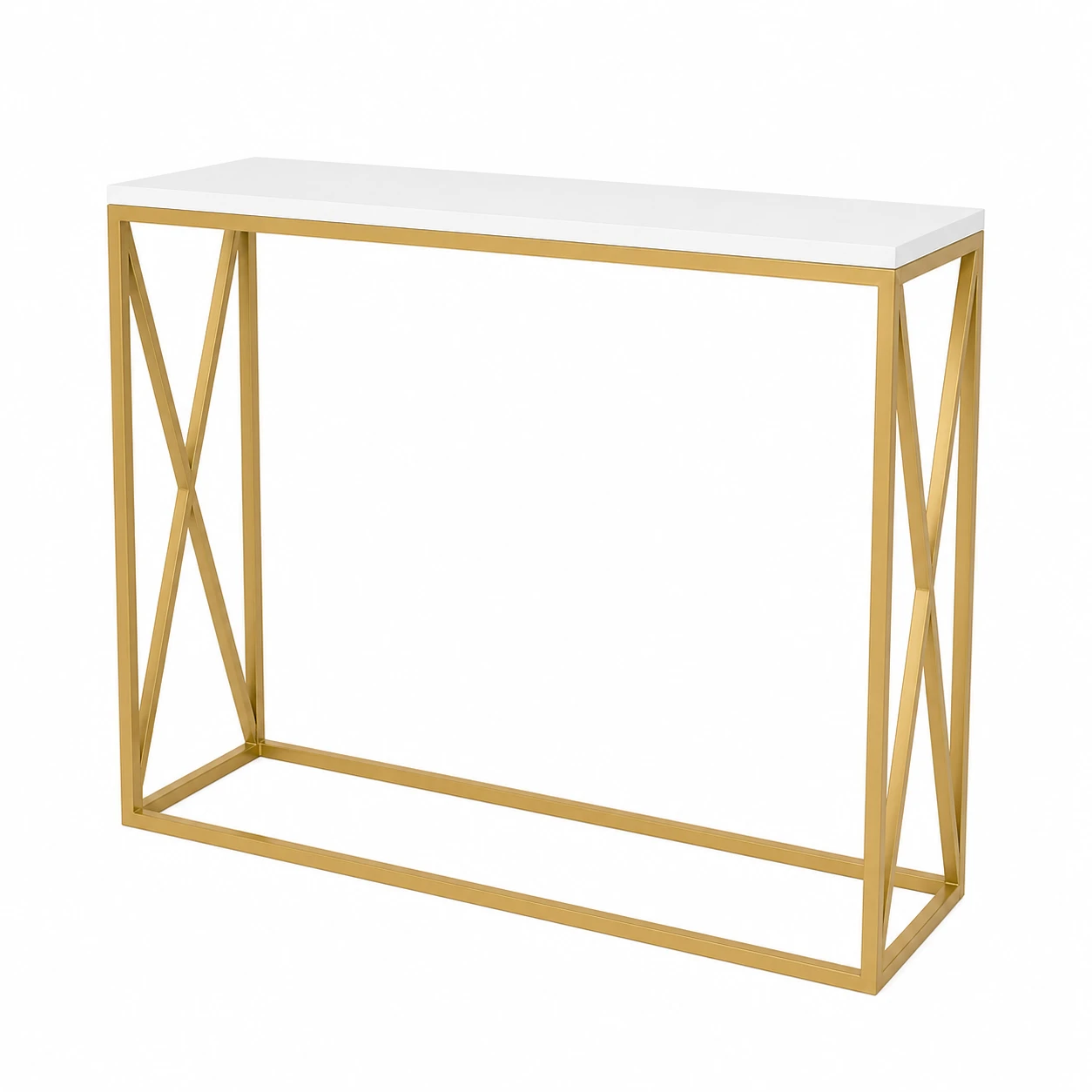 Konsolka, toaletka z "X" po bokach styl industrialny loft profil 15x15 złota glamour
