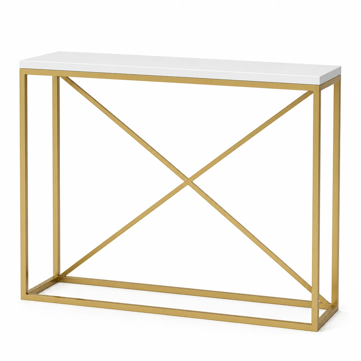 Konsolka, toaletka z "X" z tyłu 100x20x90 styl industrialny loft profil 15x15 złota glamour