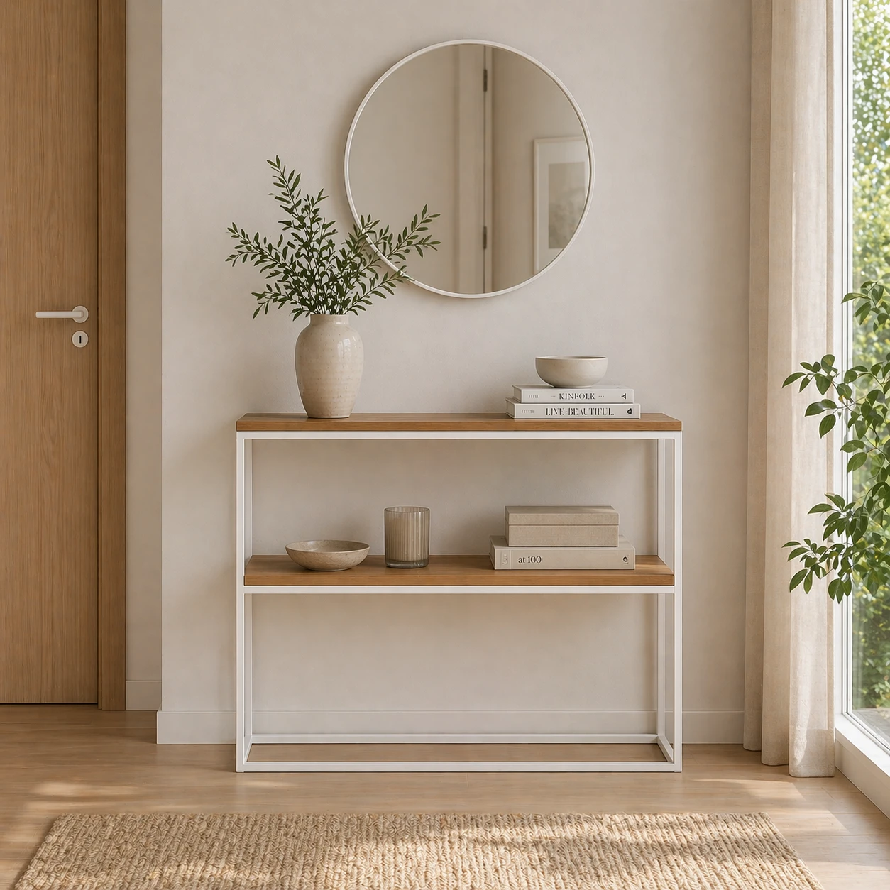 Konsolka STALWELD FOR HOME to funkcjonalny mebel o minimalistycznej formie, zaprojektowany z myślą o nowoczesnych wnętrzach. Smukła konstrukcja i prosta geometria sprawiają, że dobrze sprawdza się jako element wyposażenia przedpokoju, sypialni lub salonu.