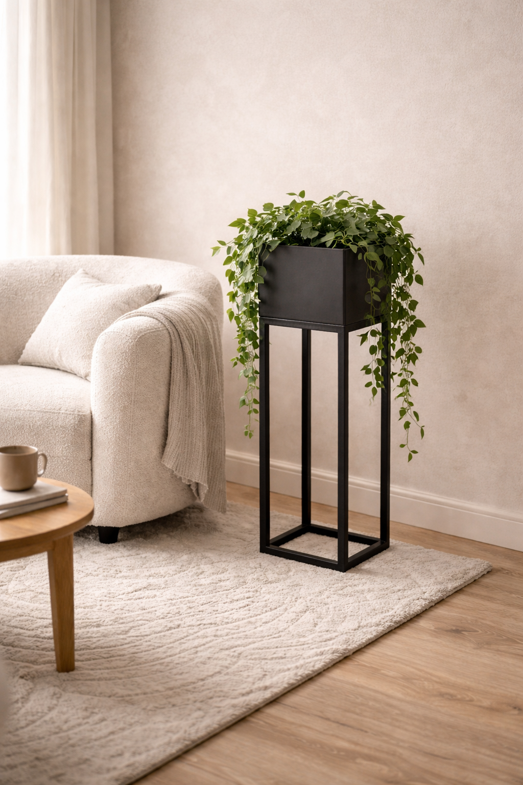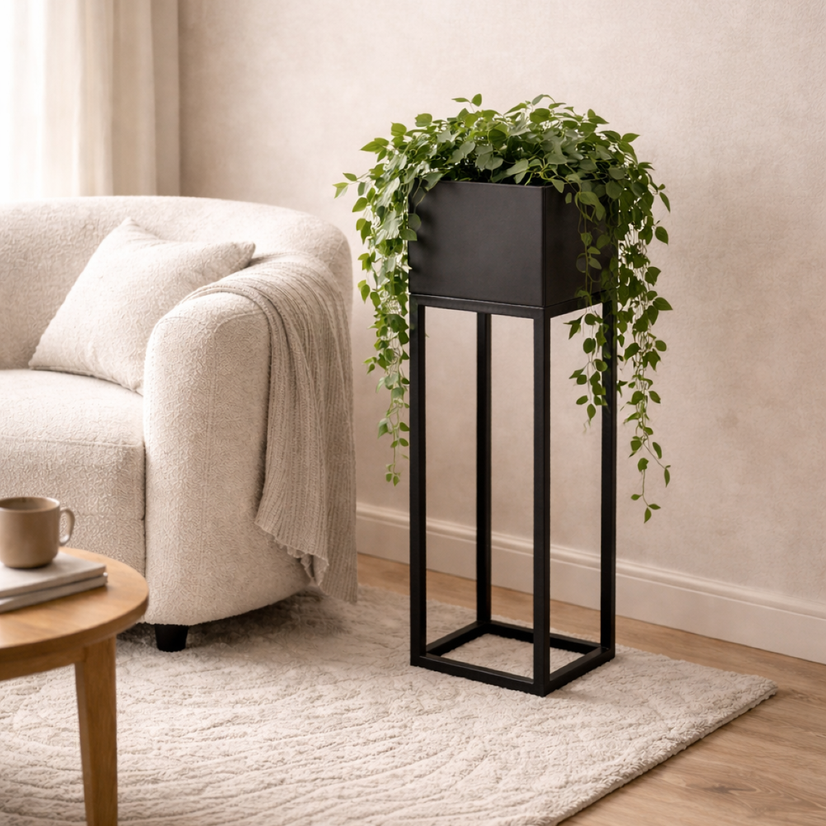 - Donica dekoracyjna z profili stalowych, w całości spawana. Przeznaczona do użytku wewnętrznego jako stojak na rośliny (max. 10 kg). Nie siadać, nie stawać, nie wspinać się. Ustawiać na stabilnym, równym podłożu. Chronić przed wilgocią, dziećmi i silnym wiatrem. Nie przesuwać z ciężarem. Czyścić delikatnie, bez użycia agresywnych środków. Nie używać jako mebla ani zabawki.