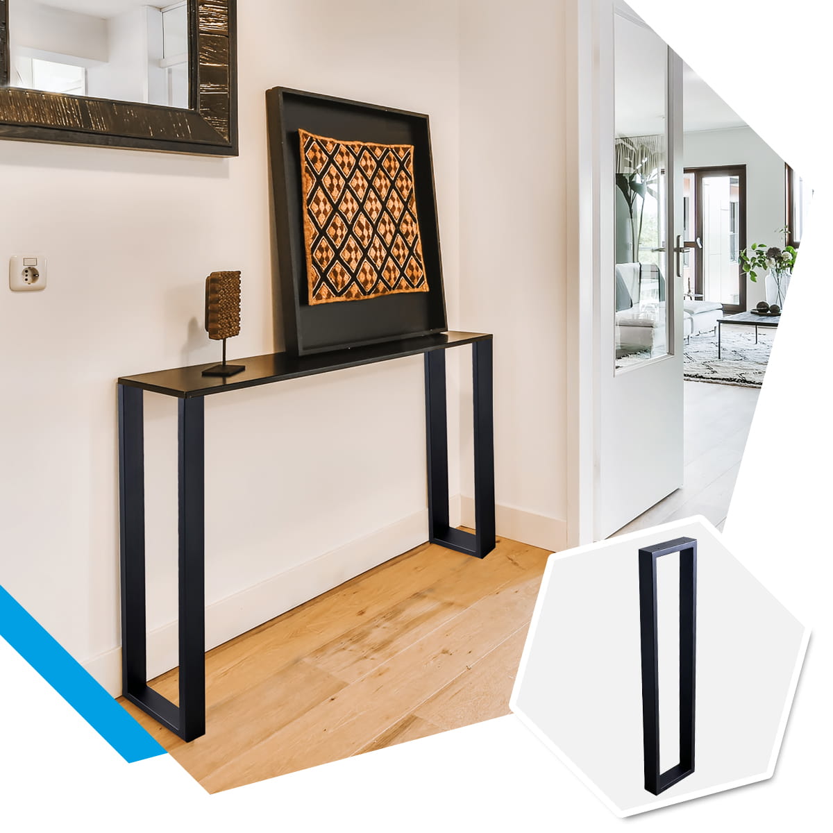 Minimalistyczne nogi meblowe STALWELD FOR HOME zaprojektowane do nowoczesnych stolików kawowych i ław. Wymiary 25×85 cm oraz profil 60×20 mm zapewniają lekką wizualnie bryłę przy zachowaniu wysokiej sztywności konstrukcji.