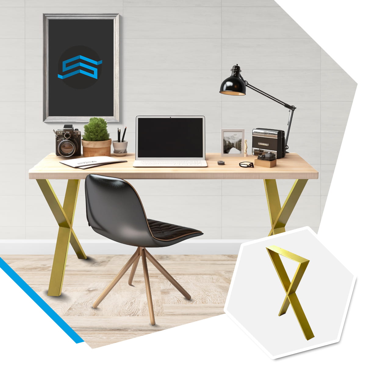 Noga, nogi 50x72 do biurka, stołu "X" industrialna, loft glamour złota profil 8x2