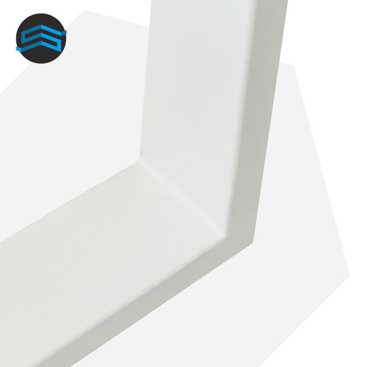 Precyzyjne cięcia pod kątem 45° i spawana w całości rama nadają całości dopracowany, architektoniczny charakter — bez zbędnych detali, w estetyce współczesnych wnętrz.