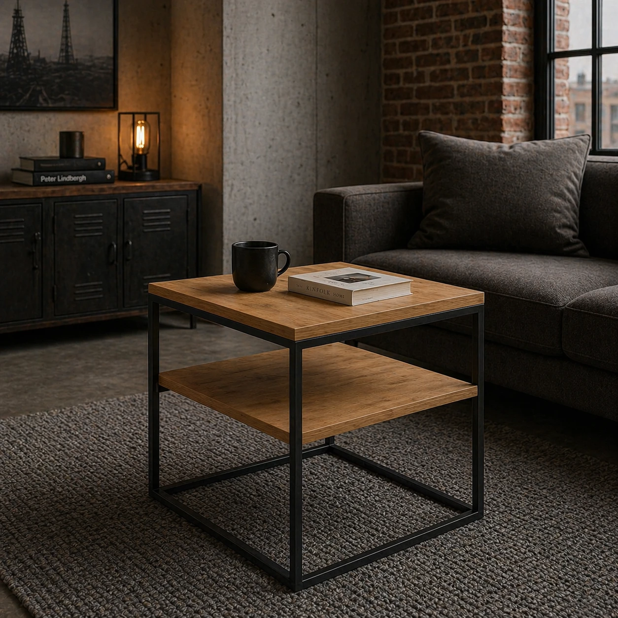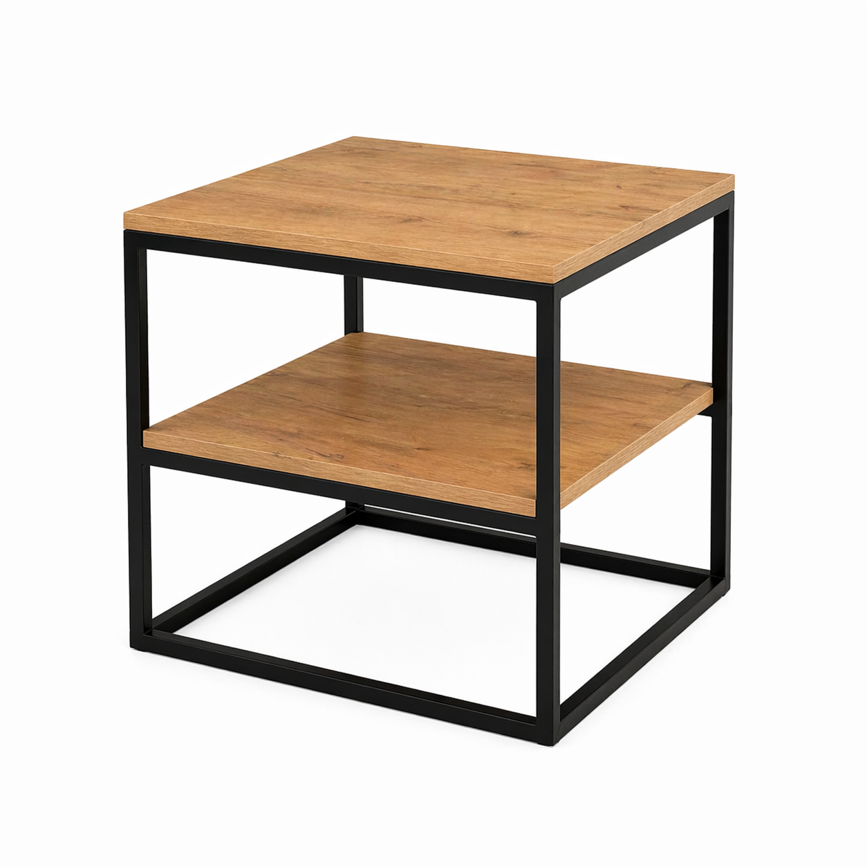 Stolik kawowy 50x50x52 nocny, pomocniczy styl industrialny Loft z dodatkową półką w połowie wysokości