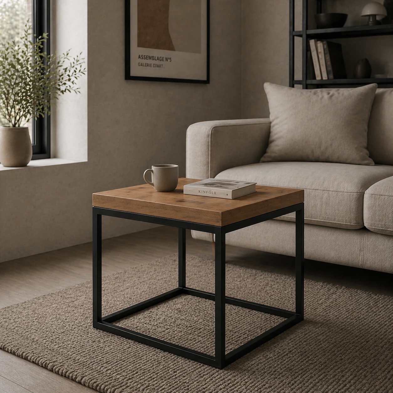 Stolik kawowy 55x55x54 blat 36mm styl industrialny loft profil 15x15