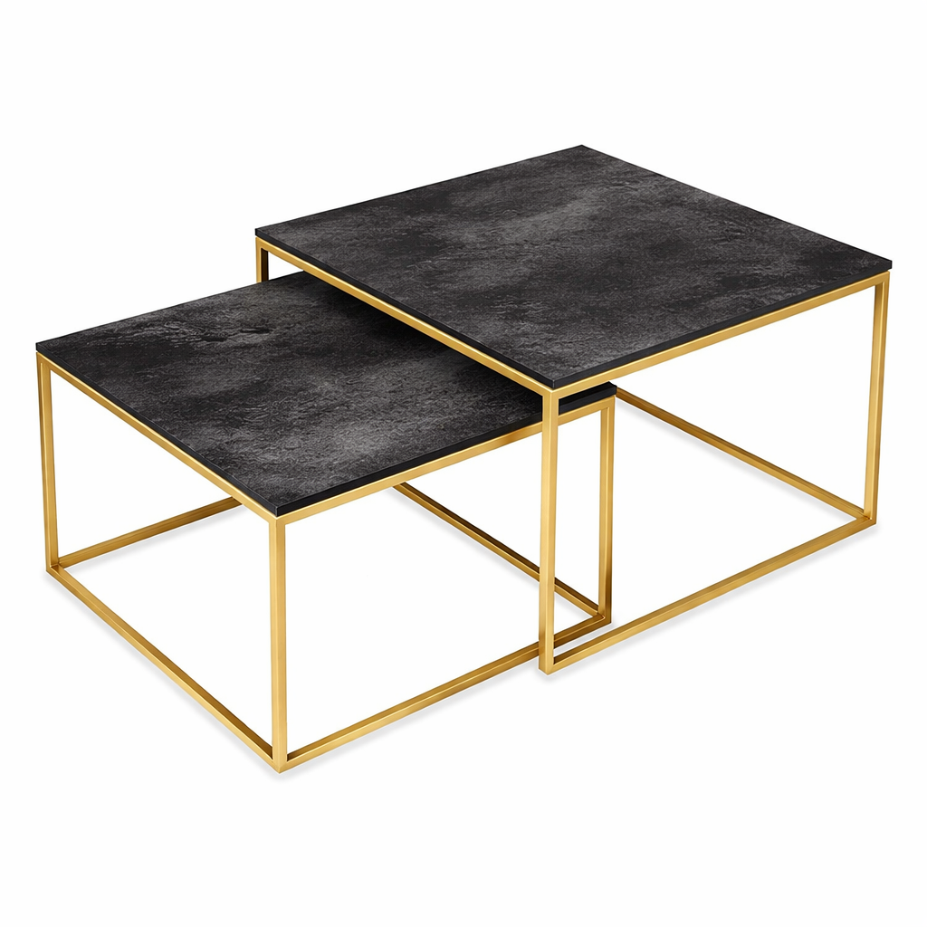 Zestaw stolików 65x65+55x55 kawowych styl industrialny loft złoty