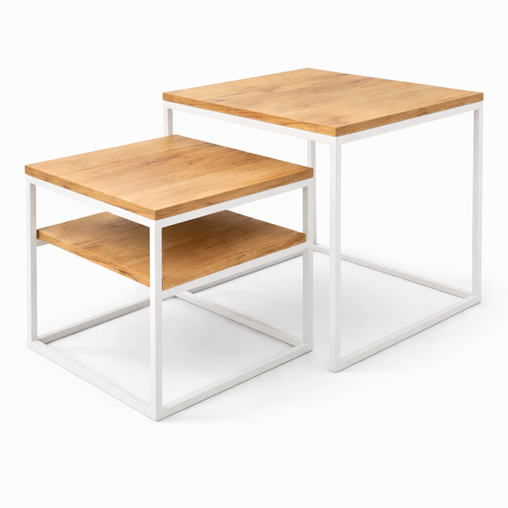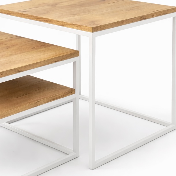 Zestaw stolików kawowych 50x50x50+40x40x40 loft Biały